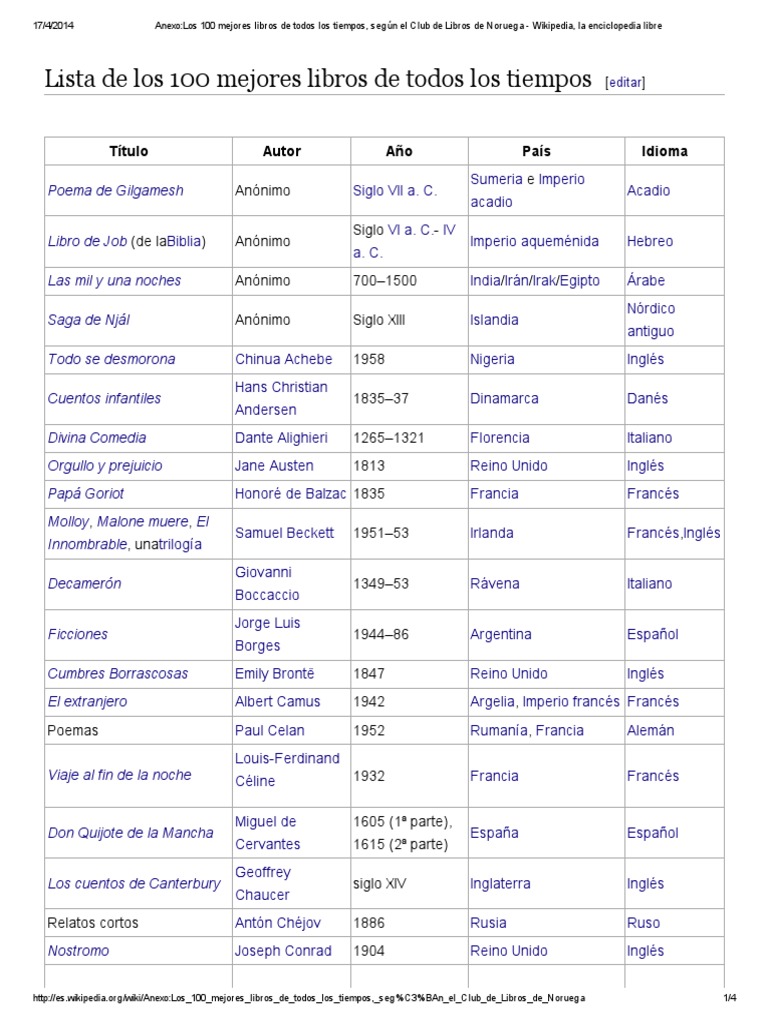Anexo_Los 100 Mejores Libros de Todos Los Tiempos, Según ...
